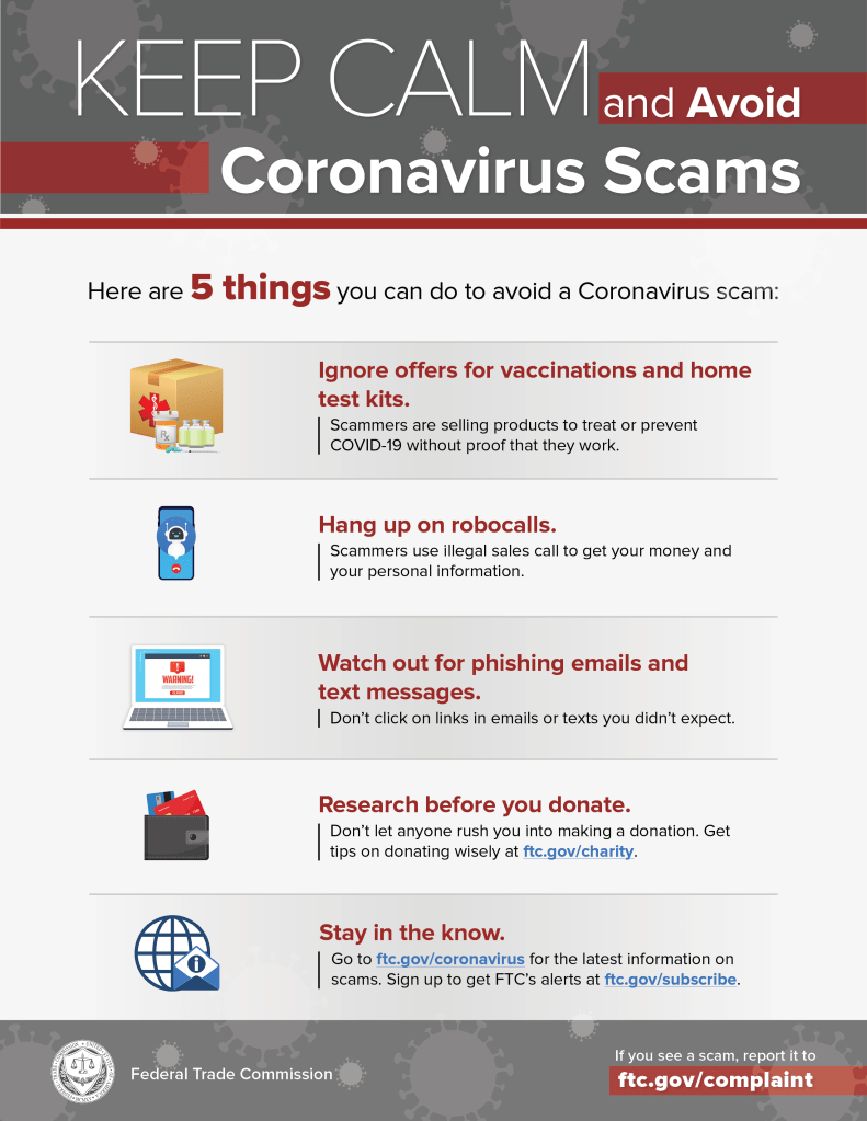 The Federal Trade Commission and the FBI have released warning on scams using coronavirus. Here are some tips to better protect yourself from fraud: