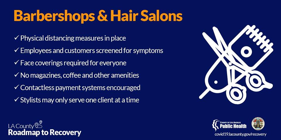 Key, specific guidelines for customers at hair salons, barbershops and in-person restaurant dining are below. For a list of FAQs, click here.