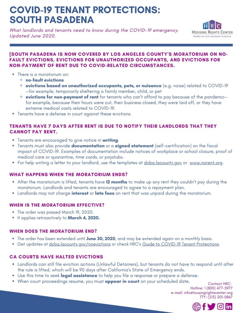 The Housing Rights Center will be holding a series of Housing Rights Workshops via Zoom for landlords and tenants this Friday, June 26, 2020.