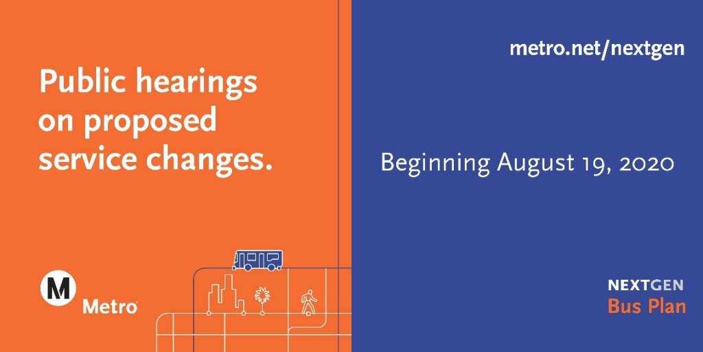 We encourage you to join LA Metro at any of six public hearings https://www.metro.net/projects/nextgen/events/ being held between August 19-27 to review the July 2020 Updated NextGen Bus Plan.