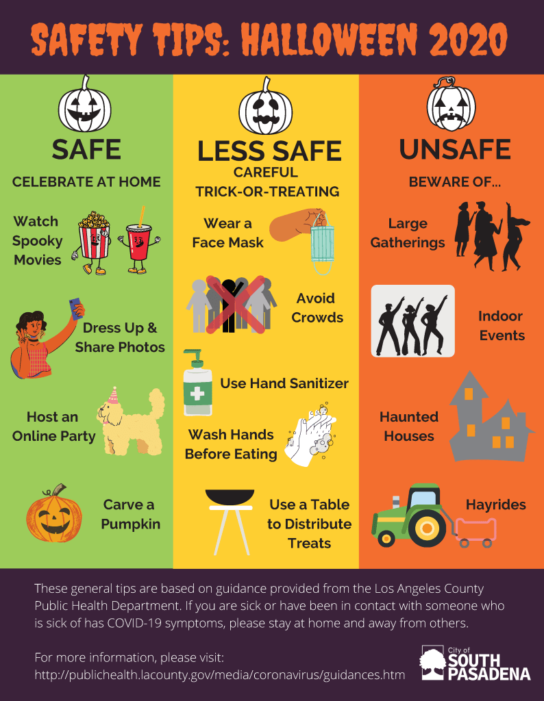 Spook-Thru registrants (and the public!) are encouraged to follow the county guidelines when participating in Halloween events. For information regarding the Spook-Thru event, please visit www.southpasadenaca.gov/events
