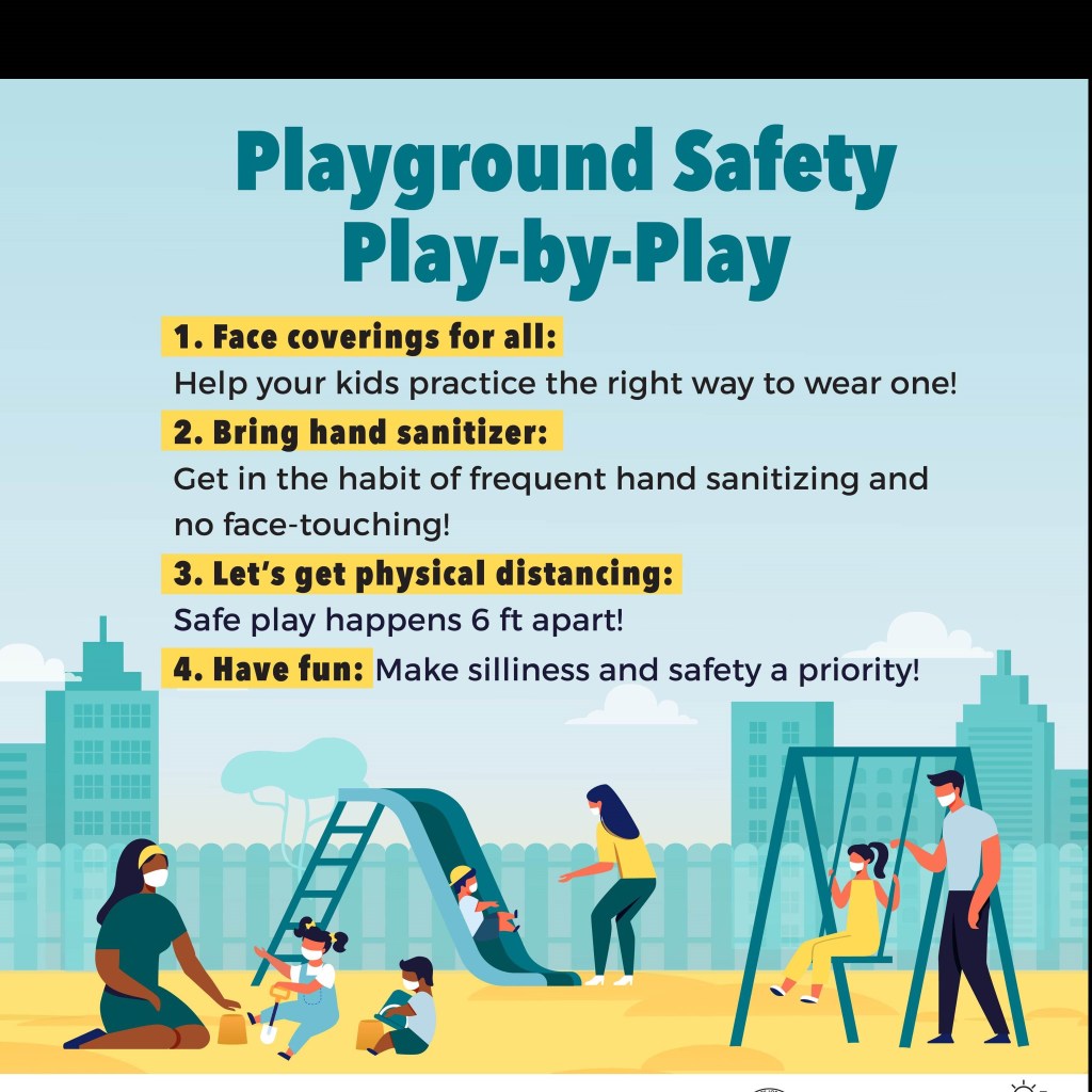 Stay safe at local playgrounds CityHallScoop no comments October 29, 2020 Help your kids play it safe. Practice wearing face coverings, physical distancing, and hand sanitizing. 10/29/2020 Share this: Share on X (Opens in new window) X Share on Facebook (Opens in new window) Facebook Like Loading... Related