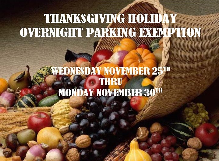 Overnight Parking Is Exempted From Wednesday, November 25, 2020 – Monday, November 30, 2020.