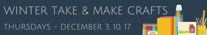 In December the Library will be giving out Take & Make craft kits for kids! Each kit includes instructions and the necessary materials—all you need at home are scissors, glue, and crayons. Take & Make kits will be distributed on a first come, first served basis starting at 11:00 a.m. on Thursday, December 3, 10, and 17. Pick up kits and get creative with Snowman Chains (ages 4 and up), Snowman Cards (ages 6 and up), and Yarn Hats (ages 8 and up).