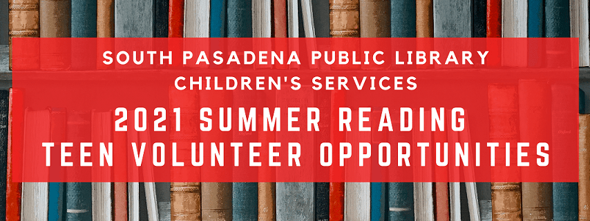 Teens interested in volunteering with the South Pasadena Public Library during the 2021 Summer Reading Program should complete the interest form now to receive the volunteer application and information which will be emailed in early March. Interested volunteers must be completing 6th grade this year to apply. Those chosen to be a volunteer will be notified by April 30.