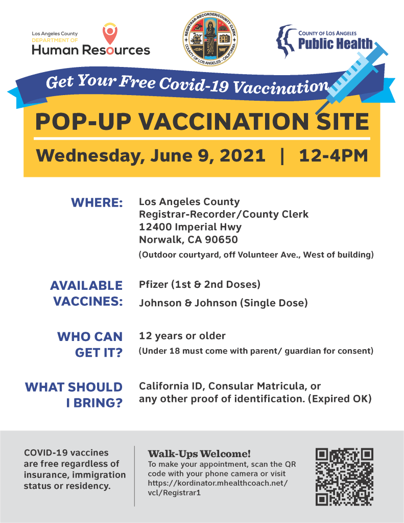 Pop-Up Vaccination Site 6/9 CityHallScoop no comments June 8, 2021 To make an appointment visit: https://kordinator.mhealthcoach.net/vcl/Registrar1 .6/8/21 Share this: Click to share on X (Opens in new window) X Click to share on Facebook (Opens in new window) Facebook Like Loading... Related