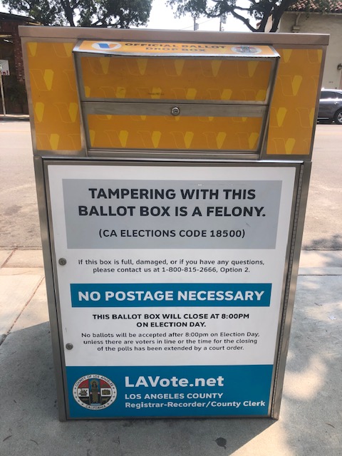 Ballots dropped off in the Ballot Drop Box will be collected by L.A. County Registrar-Recorder/County Clerk staff members every 72 hours. On Election Day, ALL Drop Boxes will be locked at 8 p.m.