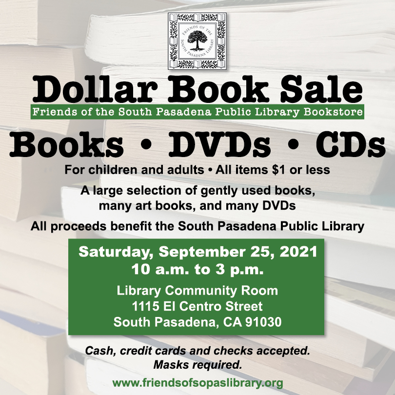Join the Friends of the South Pasadena Public Library as they offer a dollar book sale on Saturday, September 25th, 2021 from 10am – 3pm!