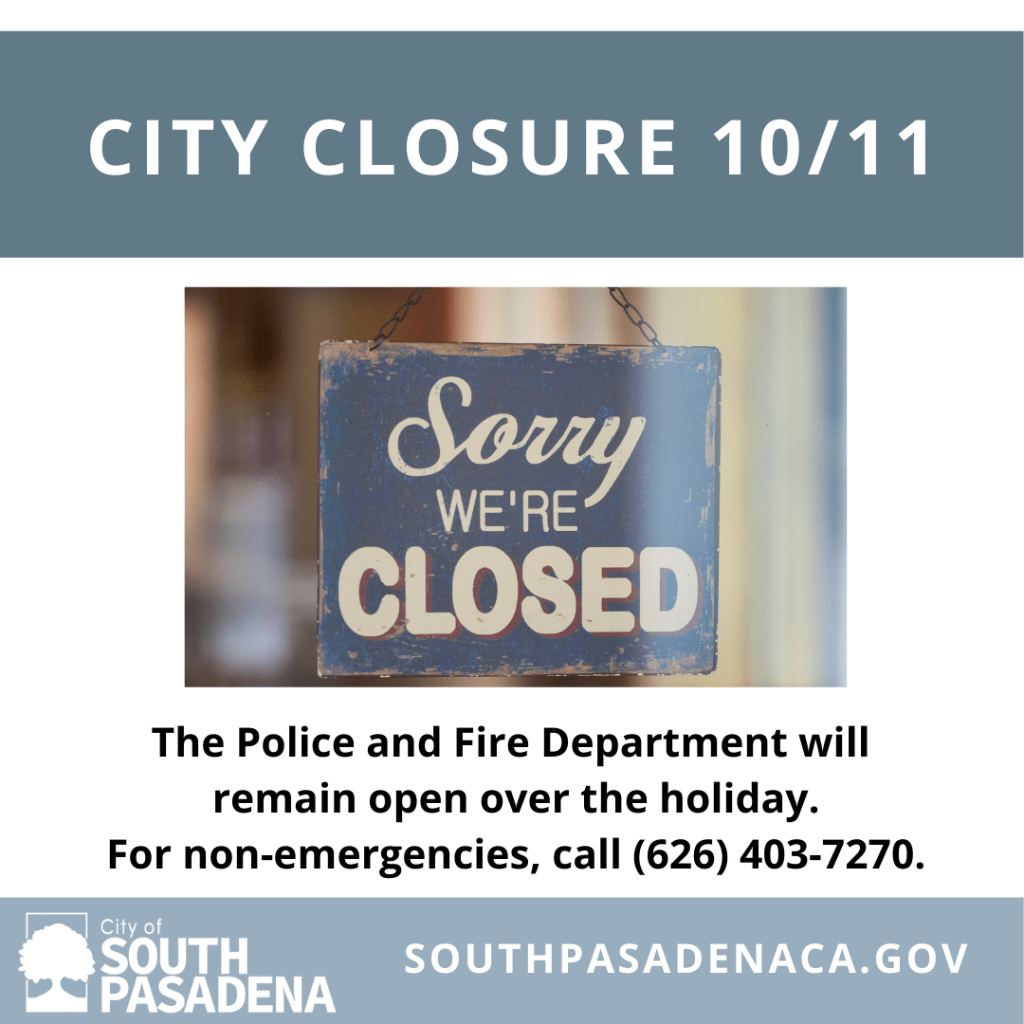 Both the South Pasadena Police and Fire Departments will have staff available to assist the public. For non-emergency assistance, you may contact the Police Department at (626) 403-7270, while the Fire Department can be reached at (626) 403-7300