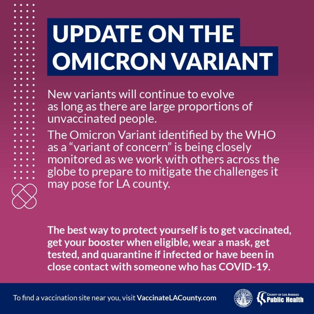 As of today, Omicron is now present in 35 countries, with three cases detected in the United States, one in San Francisco County, one in Minnesota and another in Colorado. There are no cases in Los Angeles County as of now.