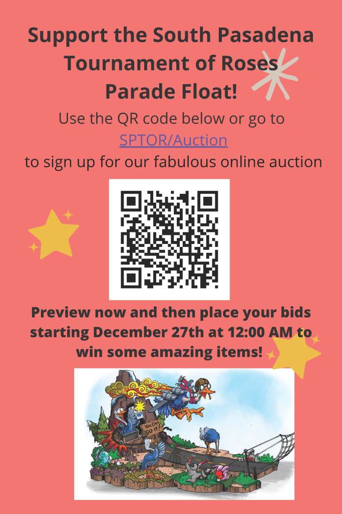 Scan the QR code or visit https://www.sptor.org/ to learn how to support the South Pasadena Tournament of Roses Parade Float!