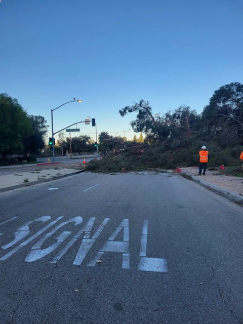 Due to the high winds, there are several downed palm fronds, small branches, and debris throughout the City. Fallen Trees reported at Fremont & Oxley and Pasadena Ave & Arroyo Verde. City crews are in the city picking debris and clearing roads. West Coast Arborists(WCA) team are also in the city addressing the downed trees.