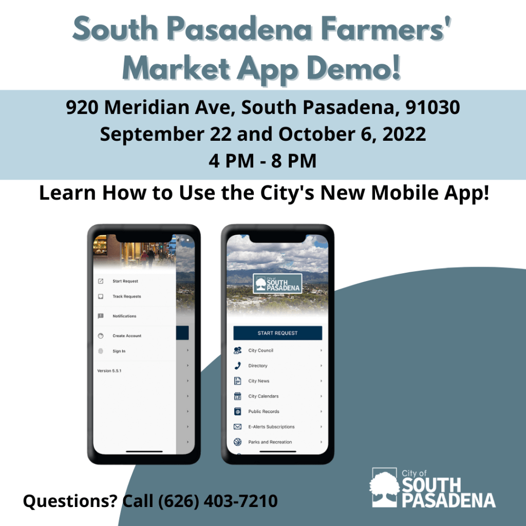 Join us this Thursday, September 22 between 4pm-8pm at the South Pasadena Farmers’ Market to learn more about the all new: SouthPas Mobile!