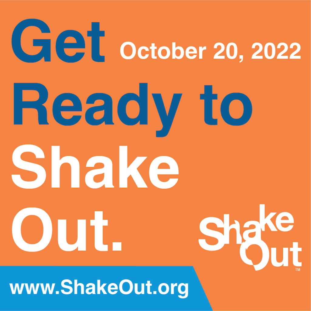 This year’s International ShakeOut Day is October 20, when millions of people worldwide will participate in earthquake drills at work, school, or home!