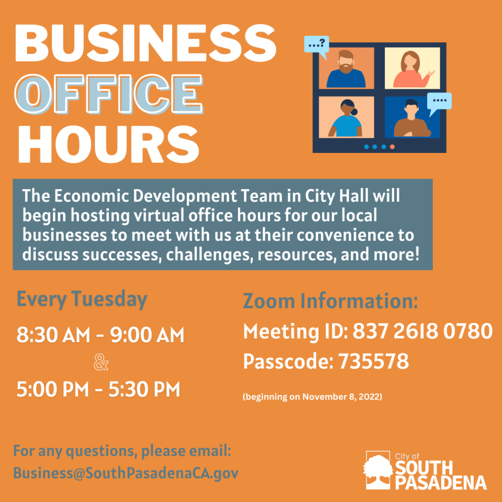 The City’s Economic Development team is excited to announce a new program: Virtual Business Office Hours! The program will launch tomorrow morning and will continue in the months to come!