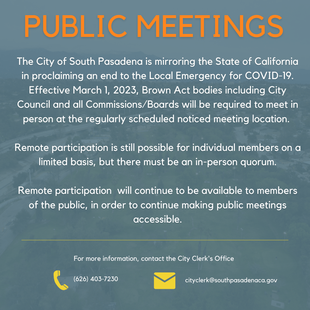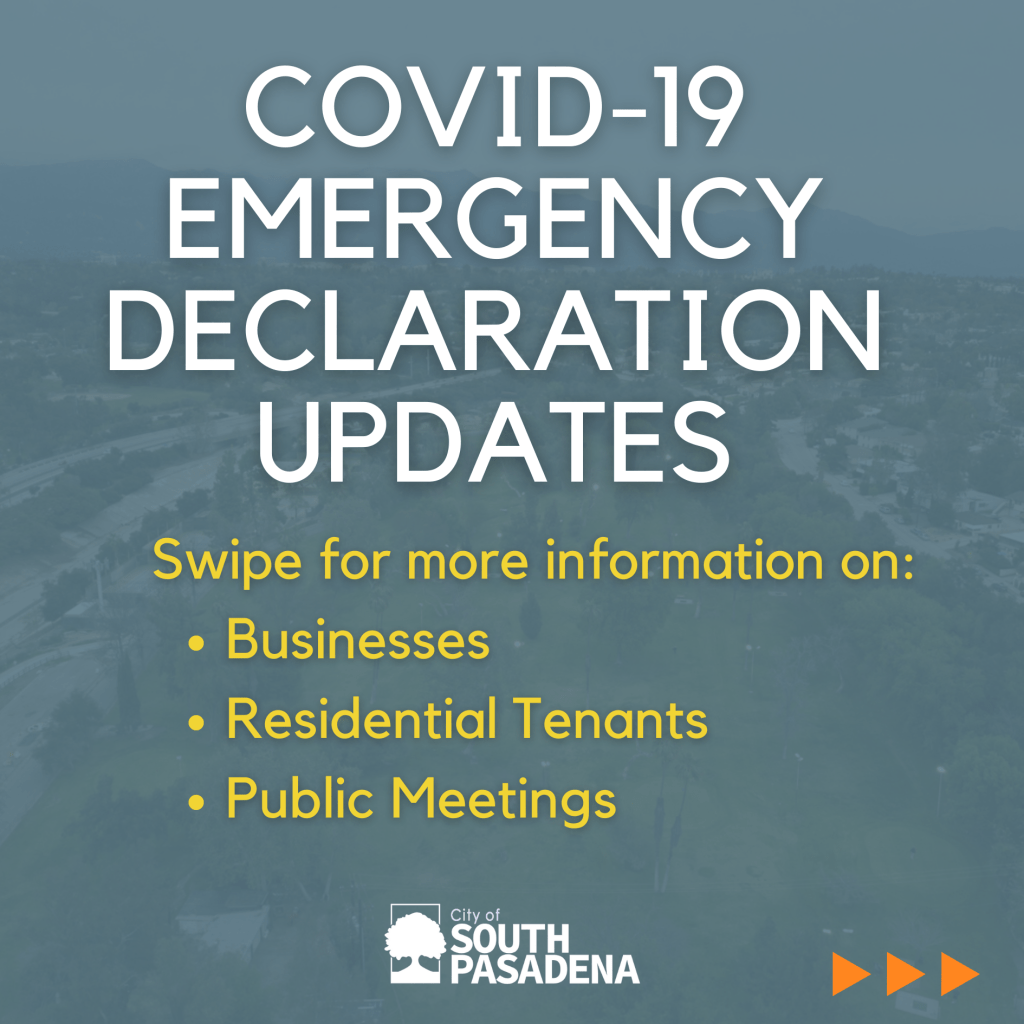 Updates and resources from the City of South Pasadena regarding the end of the COVID-19 Emergency Declaration per the State of California. See all posts for information regarding businesses, residential tenants, and public meetings.