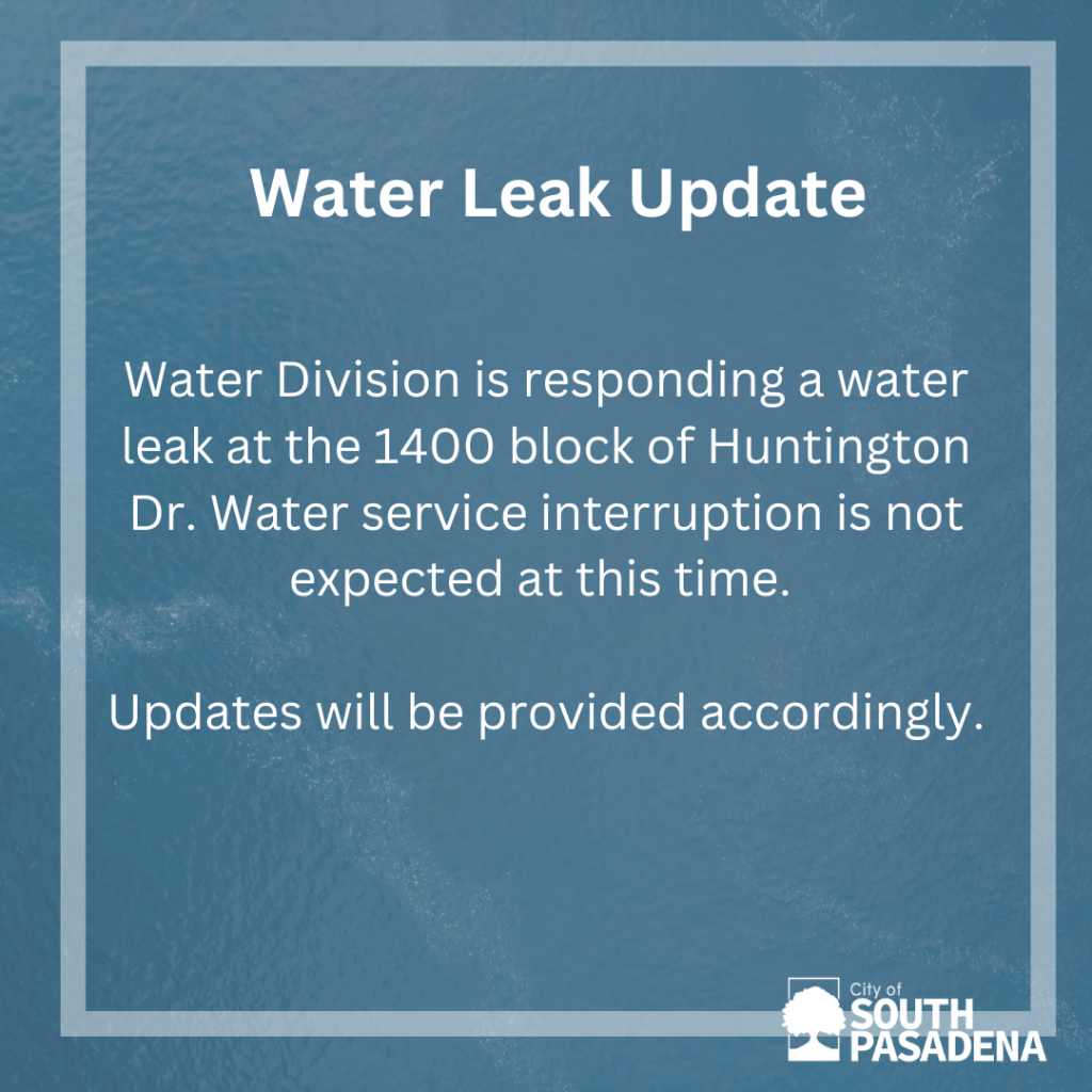 Water Division is responding a water leak at the 1400 block of Huntington Dr. Water service interruption is not expected at this time. Updates will be provided accordingly. Thank you for understanding.