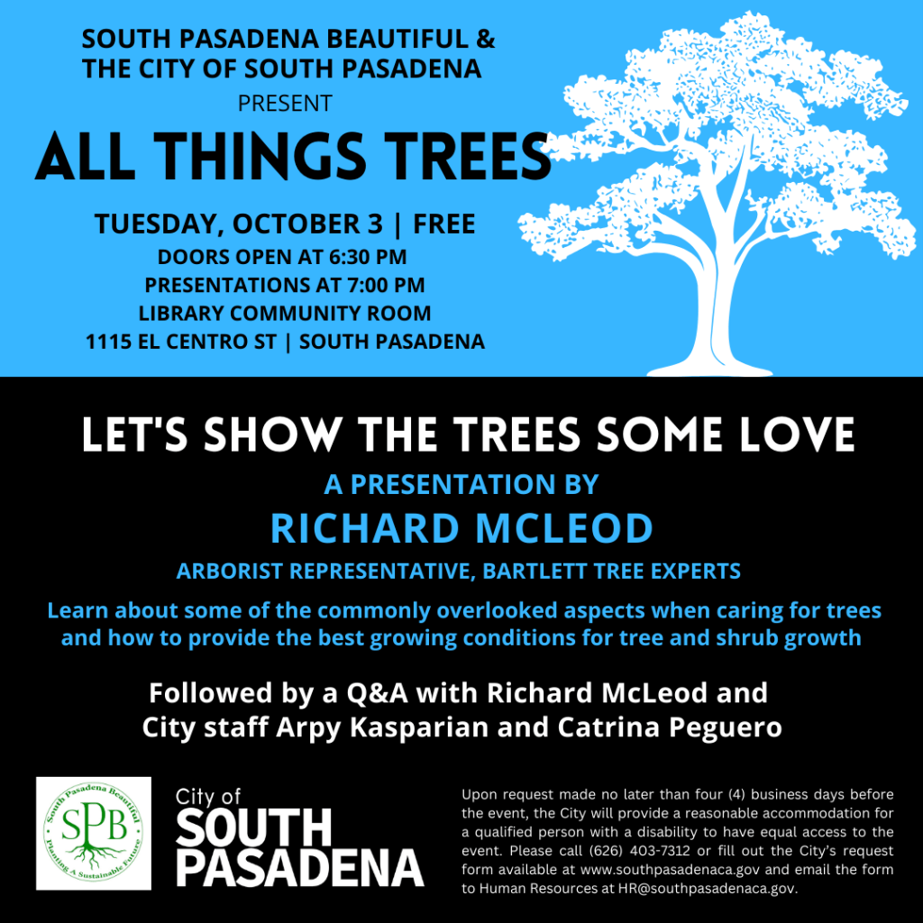 The Library and City are excited to partner with South Pasadena Beautiful to present a special program that is “All Things Trees”!