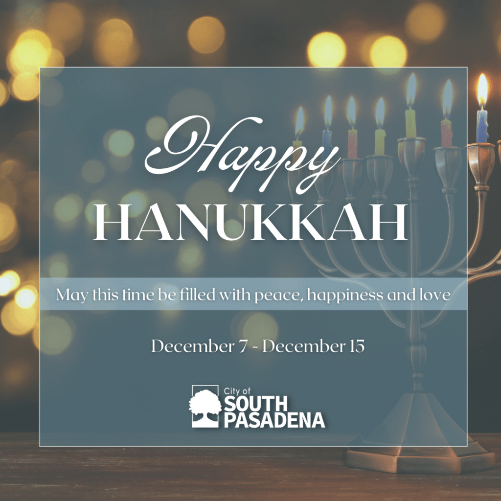 Happy Hanukkah from the City of South Pasadena! CommunicationsTeam no comments December 7, 2023 Happy Hanukkah from the City of South Pasadena! Wishing you a joyful celebration filled with light and peace! ๐ Share this: Click to share on X (Opens in new window) X Click to share on Facebook (Opens in new window) Facebook Like Loading... Related