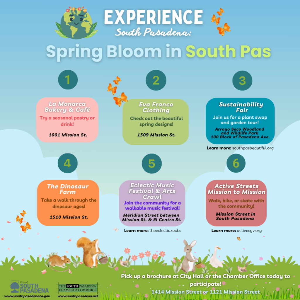 The City and the South Pasadena Chamber are thrilled to announce the next series of our Experience South Pas program: Spring Bloom in South Pas.