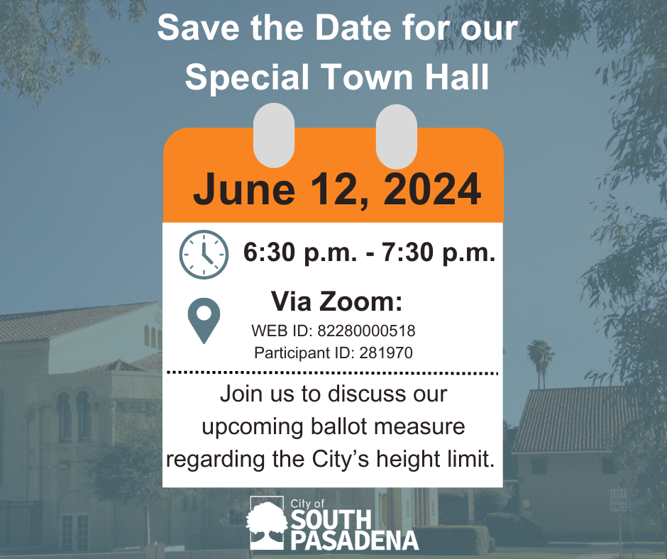 Our panel experts will be ready to educate on the City’s Housing Element and to address any questions you may have on the proposed ballot measure. Please submit your questions to housingelement@southpasadenaca.gov.