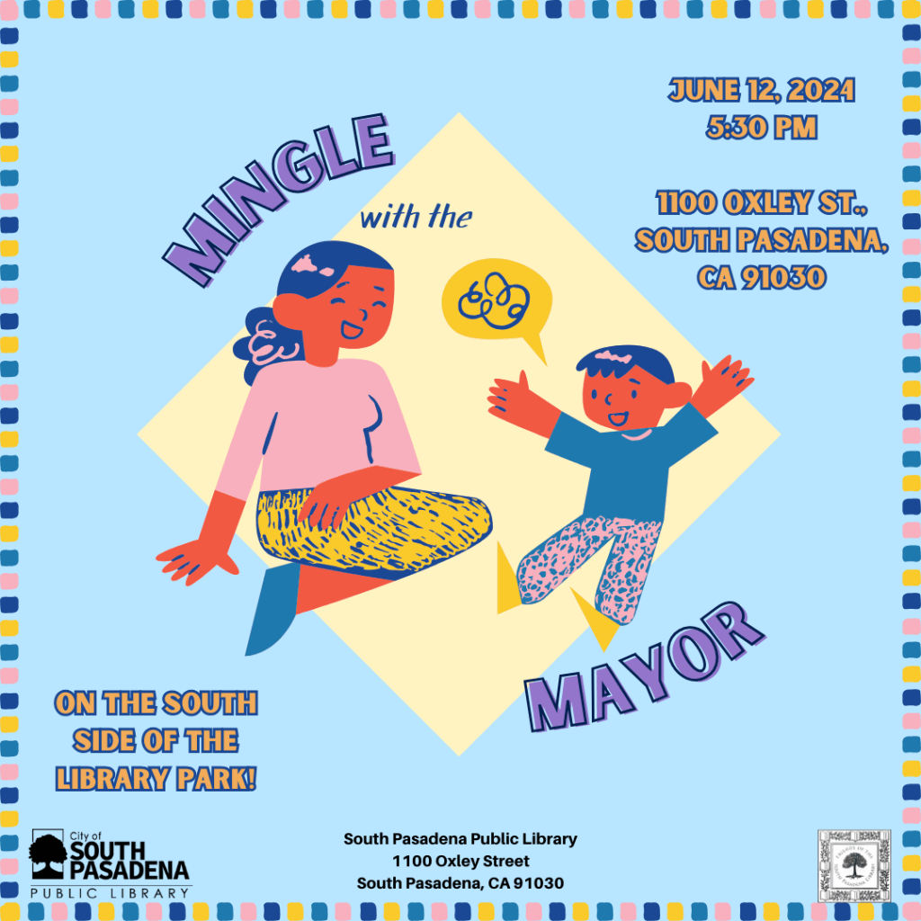 Plus, don’t miss out on complimentary Kona Ice to cool off while supplies last. South Pasadena Library’s Wonderful Wednesday program will follow immediately afterwards.