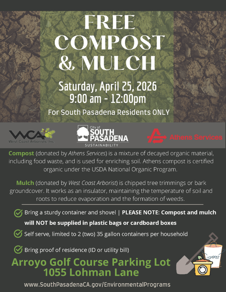 South Pasadena residents can pick up high-quality organic materials to enrich their home soil and reduce water evaporation.