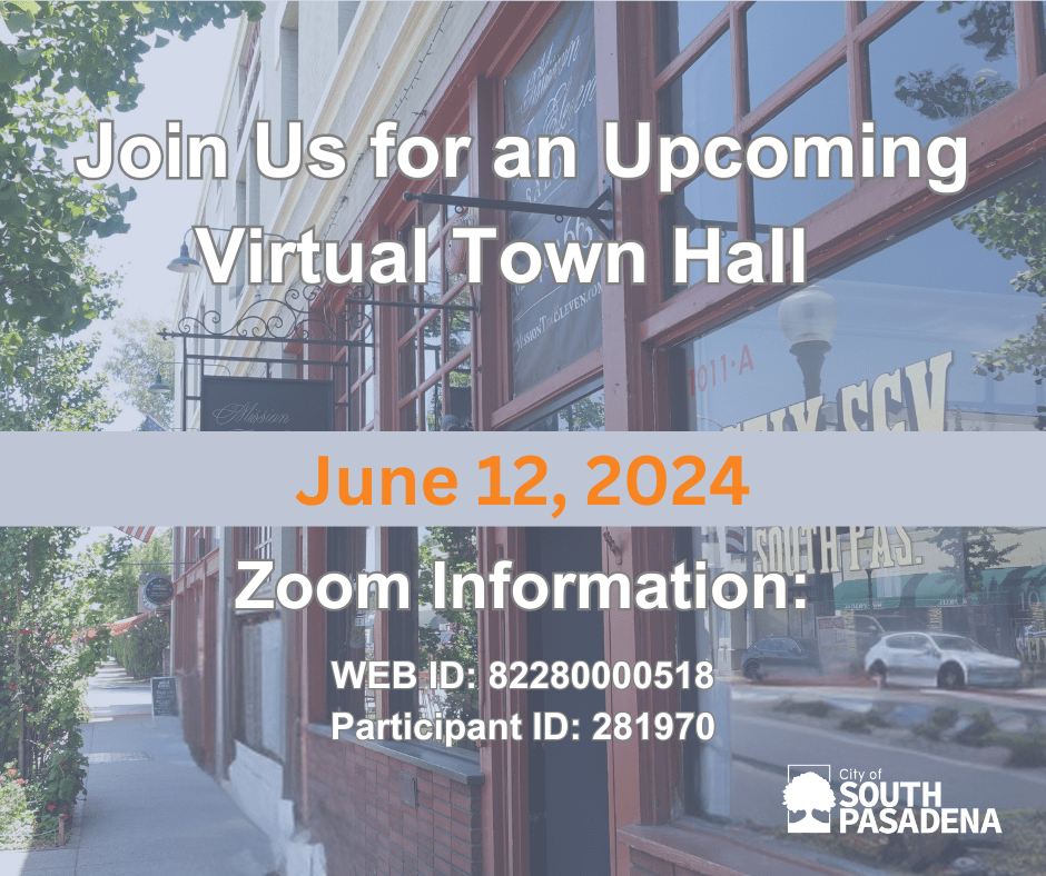 In 6 days, we will be hosting a Virtual Town Hall regarding the City’s Housing Element and efforts to retain local control and an upcoming ballot measure in November. Join us on Zoom from 6:30 – 7:30 PM. Submit your questions about housing to housingelement@southpasadenaca.gov. Don’t miss this opportunity to get your questions answered!