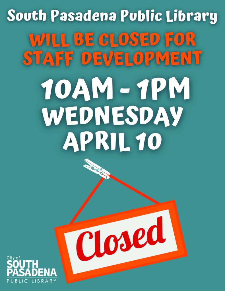 Please note that the Library will be closed from 10:00 AM-1:00 PM on Wednesday, April 10th. We will reopen for our regular hours from 1:00 PM – 8:00 PM the same day.
